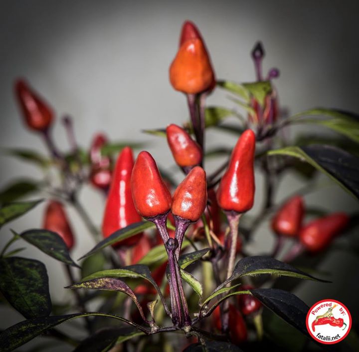 C. annuum 'Explosive Ember'http://fataliiseeds.net/search?query=explosive Very pretty ornamental pepper which ripens from purple to pink, to red in shades of different colors in between. Looks great when maturing. Not as hot as many other ornamental peppers. The powder is better than most ornamentals also. Very compact plant. Pretty as small ornamental pepper or bonchi.