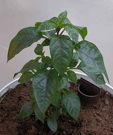 Just moved in the greenhouse. The color of the leaves is still green, but soon they will turn dark, almost black because of the sunshine.