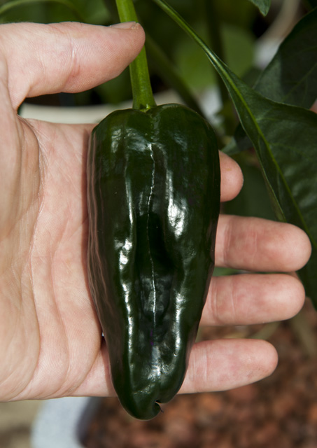 A mexican "Bell Pepper" which has a nice warmth and very sweet taste. Thick fleshed, suberb for stuffing!