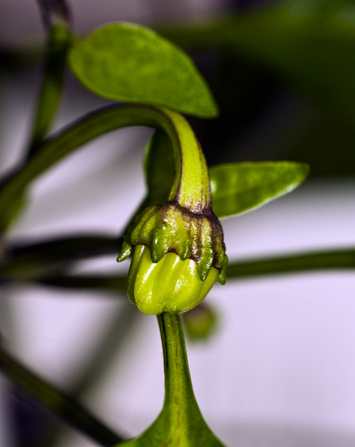 First pod forming. Black Scorpion Tongue showing some clear C. chinense traits. Very interesting variety! Seeds available at: