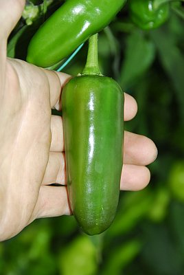 Immature, large pod. Quite tasty classic with medium pungency! Many Jalapeno varieties available at: