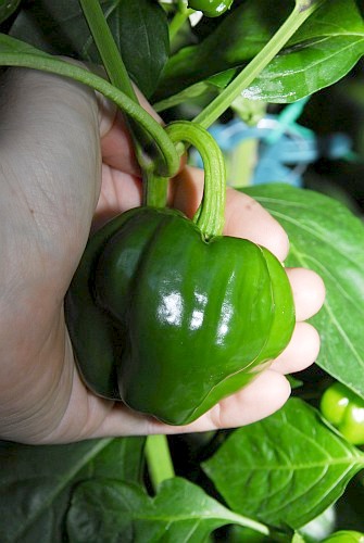 A huge bell pepper-like pod with a mild head. Might be very good for stuffing.
