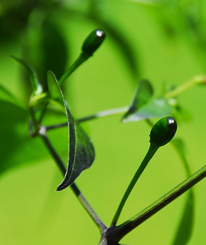 Growing outdoors. Difficult to germinate, slow to mature, typical for most tepins.. Immature pods.