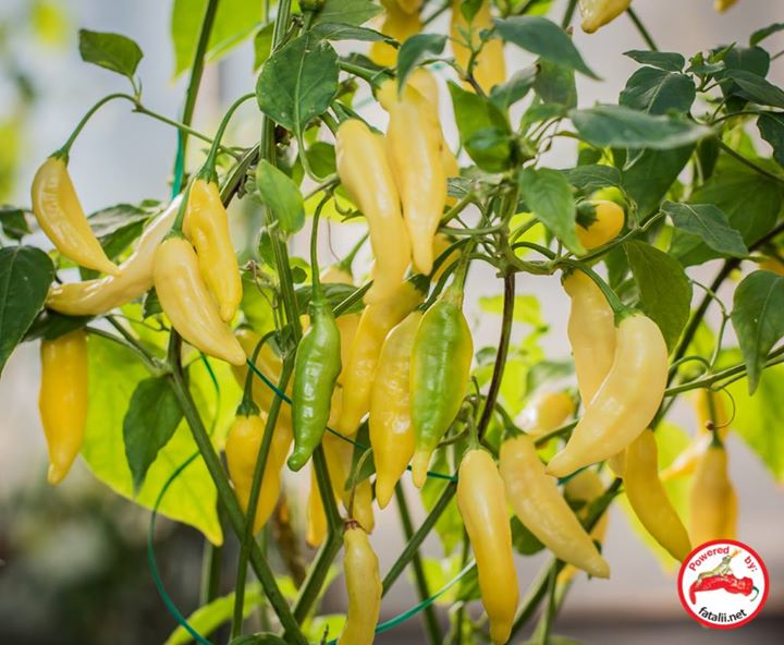 C. baccatum 'Lemon Drop'http://fataliiseeds.net/search?query=lemon+drop Here’s another great classic – and an essential part of Peruvian cuisine! Baccatum peppers traditionally only grow in South America, but they are actually the easiest and most successful plants for home growers and beginners in chili hobby. Lemon Drop represents hot, non-sweet, slightly lemon-flavored types of baccatum peppers (as opposed to sweet, low-heat or only moderately hot “Aji” –type baccatum peppers). The plant is relatively compact and produces lots of bright yellow fruit even in non-ideal home conditions. Grows well in pots. Lemon Drop is especially great for fish dishes! Also a very good, different tasting alternative to Cayenne and other Asian-type red hot peppers. Back in stock again!