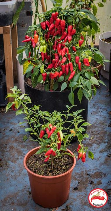 Comparing a same chili pepper variety started at the same time. Other in a smaller pot and other in a bigger pot. The one on bigger pot was also helped at first by picking the early flowers, as you can see, this makes the plant more prolific. :)