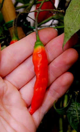 Mature pod. Interesting and good sharp heat and taste. These pods are funny, they always stay green near the pedicle. Seeds available at: http://fatalii.shop.wosbee.com/