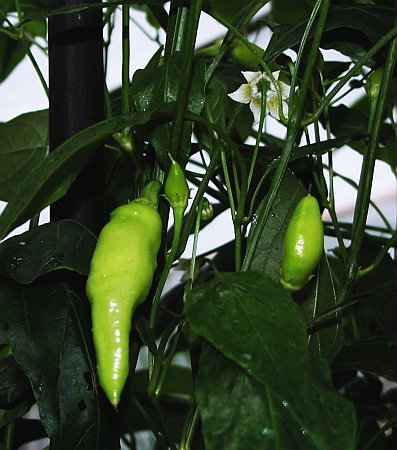 One of the Aji Cristal plants has started bearing some pods. I really love these even at very early stages.