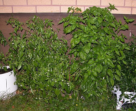 C. baccatums in the ground. Still growing very well. The one on the left is producing a LOT of pods!