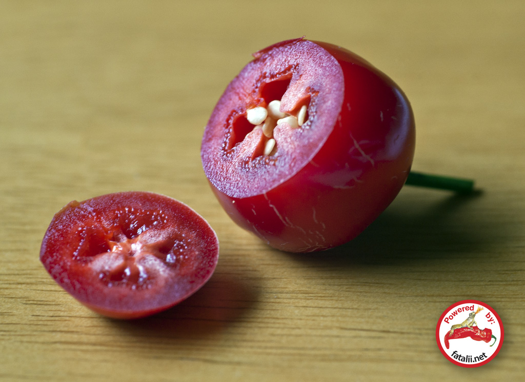 Mature split pod. This picture shows you how thick fleshed pods these pods are. One of the favorites for two pasts seasons! Heat level is medium.