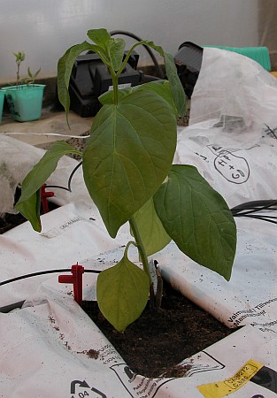 Seedling in a sack. Seems to enjoy the warmth of the soil a lot. The temperature in the soil bag varies between 20-30 degrees celsius.