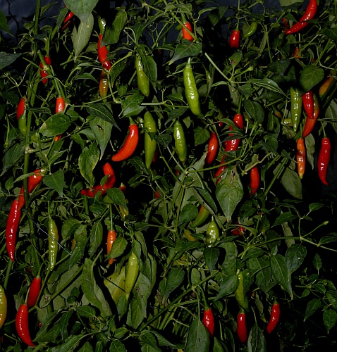Maturing pods. sweet, great baccatum taste with a sharp bite. Big and prolific plant.