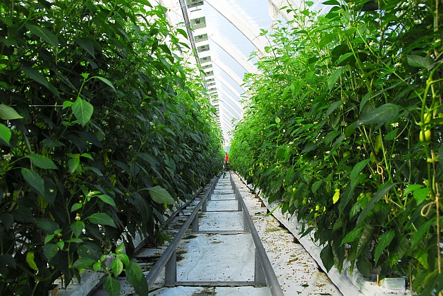 C. baccatum var. 'A view from the huge greenhouse!'Aji Cristals growing in this room.
