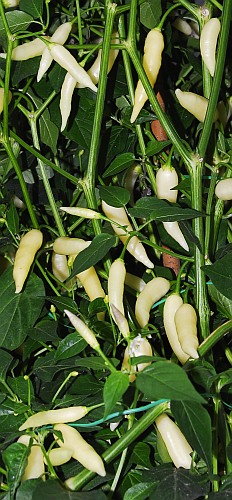 Producing lots and lots of white pods that will turn yellow, orange and then red.