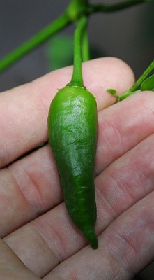 Immature pod. Seems to be very raw. I think it will grow much bigger.