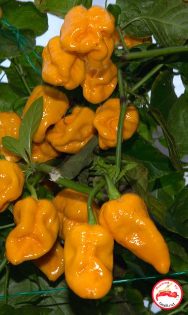 C. chinense '7pot Yellow' A fantastic chile pepper which is a version of the classic 7pot variety, almost as hot and with even stronger aroma than the original 7pot. If you like HOT cooking and love the fruity flavor of some super hots, then this one is for you! Seeds: http://fataliiseeds.net/search?query=7pot+%2F+7pod+yellow