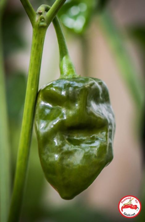 C. chinense 'Harold, StBart's. Green'. This amazing variety of chile pepper never changes it's color from green. It will have a slight yellow tint on some of the pods, but overall it's completely green. This is very unique trait. The taste is very special too! Limited supply of seeds: http://fataliiseeds.net/search?query=harold