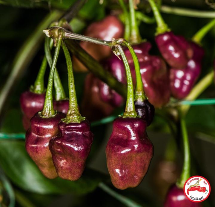 C. chinense 'Fidalgo Roxa'Seeds available: http://fataliiseeds.net/search?query=Fidalgo This chile pepper variety has been one of the favorites of mine for a couple of seasons. These pods are very pretty at all stages of maturity. They finally ripen to purple-pink. The taste is very delicious. Heat level is quite hot but still far from the hottest ones. HIGHLY RECOMMENDED for growing.