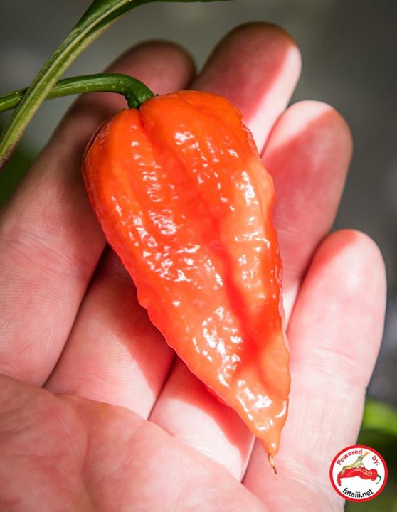 C. chinense 'Bhut Jolokia' Also known as 'The Ghost Pepper'. The burn is insane, feels like it burns a hole in your throat... One of the most famous super hot peppers. Originates from India. Capsicum frutescens genes, most likely from quite a few generations back.