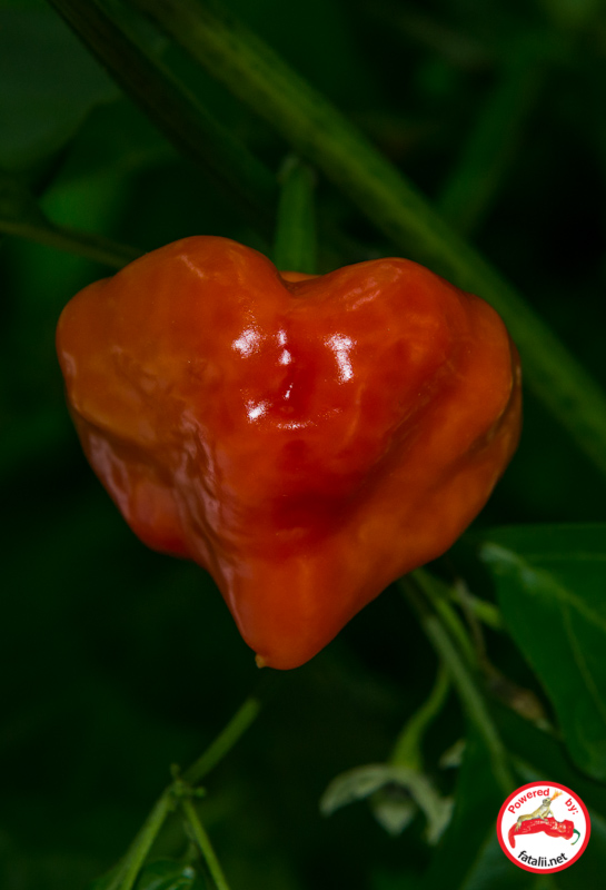 Heart shaped pod. Just a mild heat. The taste is very sweet and unique. Almost strawberry-like. Very nice! The plant can be quite fragile.
