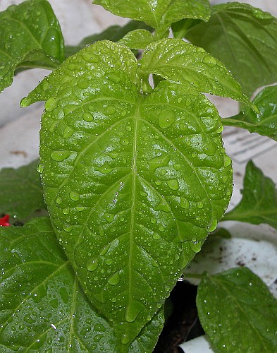 Sprayed wet. Enjoying the heat of the greenhouse.