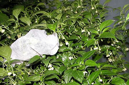 Normal & caged flowers. Caging is a technique for obtaining some pure seeds. Always remember to label the caged part!