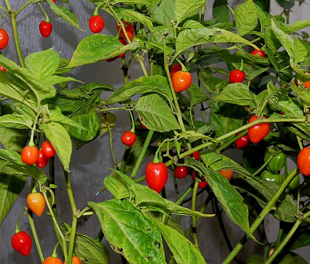 Almost completely harvested. Very nice chinense variety. VERY hot and tasty pods. Perfect for powdering. Seeds available at: