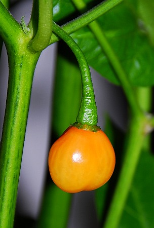 Maturing pod. Plenty of fruity, aromatic taste with enough heat for everyone! Seeds available soon at: Seeds available soon at