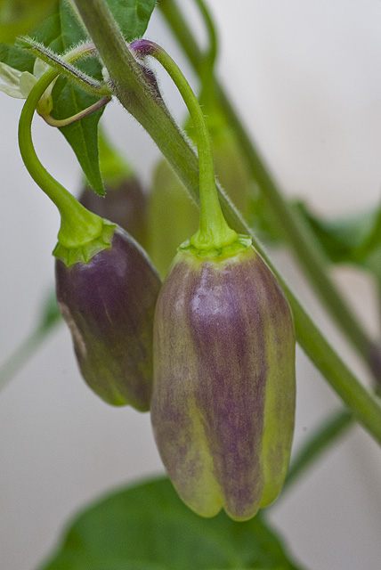 Immature pods. I tasted one at it doesn`t have any heat, at least not yet. Waiting for the pods ripen a little more. Very beautiful!