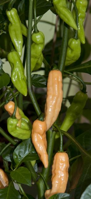 Maturing pods. This one very powerful chinense aroma and plenty of heat. Not nearly as hot as the hottest chinenses, but gives a nice kick for foods.