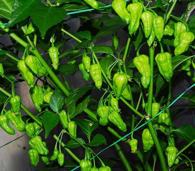 Immature pods. Naga Morich growing in homemade EBB & flood system. Nutrients used: Floramato and Floramicro combination. Some TopMax was used for increased flowering.