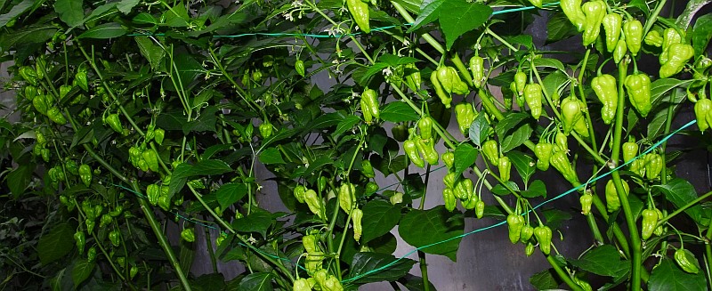 Immature pods. Naga Morich growing in homemade EBB & flood system. Some TopMax was used for increased flowering.