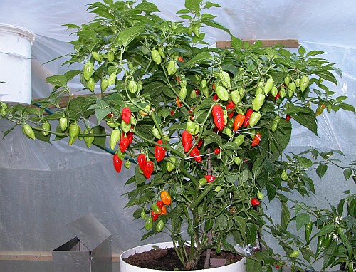 The pot it`s growing in is 44 liters. Smaller size might be enough, but in the greenhouse, extra space for the roots is always a good thing!