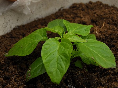 In the greenhouse... hardening-off. Tolerates low temps (7-8C at nights) quite well!