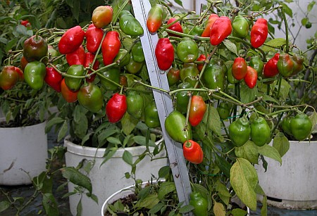 Pods maturing on a profilic, pruned plant. Grown oudoors. I call this one "Hyper pube". Ideal for cold climates! This plant was a part of the Biobizz fertilizer test.