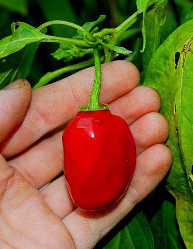 Mature pod. Very typical rocoto with lots of sweetness and heat. Very juicy pods. Seeds available soon at: