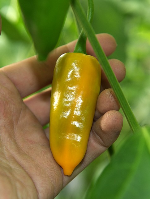 C. annuum x chinense var. 'Sweet Yellow Pepper x Bhut Jolokia F3 #1'This became one of my immediate favorites after tasting!!