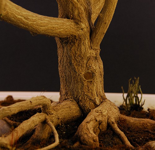 Chile bonsai stem drilled deeper. This is very dangerous procedure for the plant. If you want to make sure you won't kill the plant, don't do it! But if you have extra bonsai chiles available, you can try it. if the plant survives, it will look very nice indeed. :) Interested in growing your own bonsai chiles? Take a look at this link: http://www.fatalii.net/bonsai