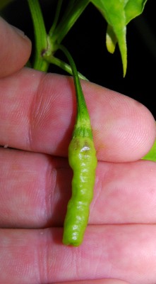 Very similar to Aji Gusanito. In these messy cases it would be better to use (C. sp) but this one is clearly something between chinense and a little frutescens.