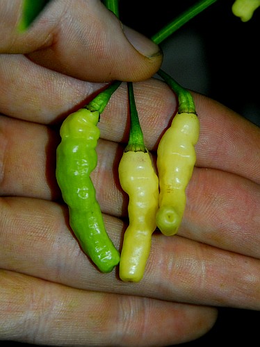 Very hot pods with a strong chinense-type aroma. Similar to Aji Gusanito. I will powder this one for a tasty and super hot powder! :) A little batch of seeds available at: http://fatalii.net/seeds very soon.