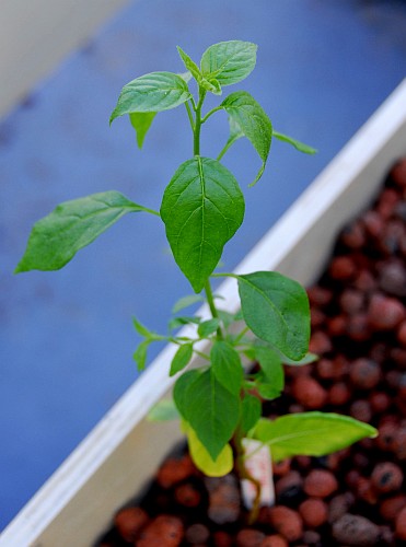 A seedling growing in EBB & flood system dedicated for wild chiles!