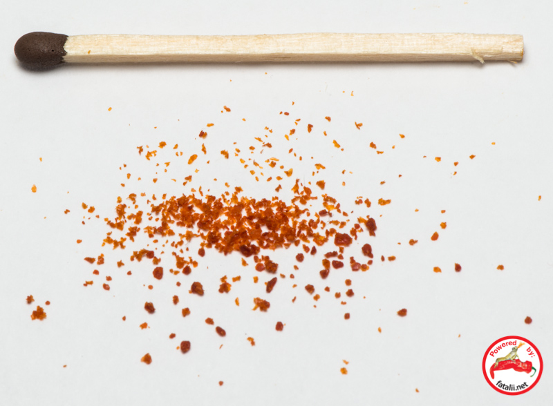 One dried pod crushed. Match stick showing some scale. As you can see. Not very much powder from one pod! But wouldn't it be great to season your food with real C. galapagoense chile powder! How cool is that. :)