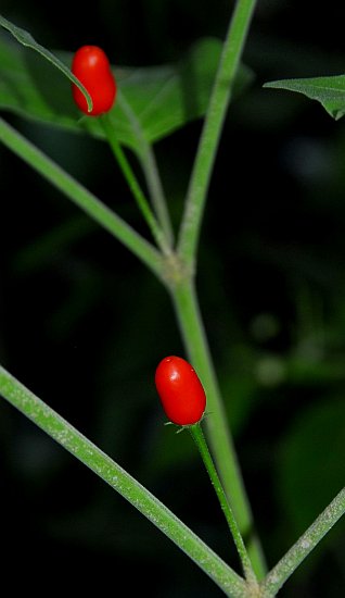 A wild capsicum. Ancestor of the chiles. Medium hot, unique taste. Seeds available at: http://fatalii.shop.wosbee.com/