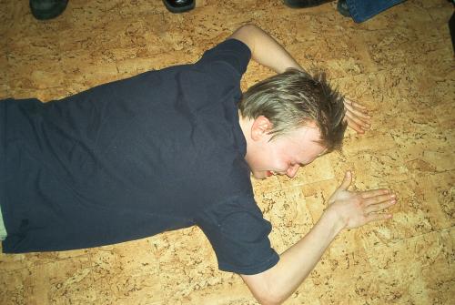 Leero sätkii maassa vedettyään puriraa, fataliita ja lemondroppia.
