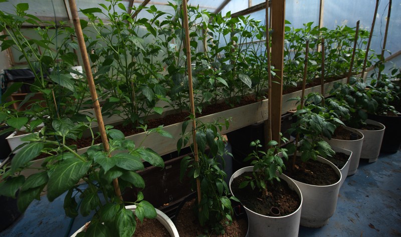 Cold side of the greenhouse. Growing very rapidly on EBB & flood system! Next batch of nutrients will be flowering nutrients which means lots of flowers and pods to come soon!
