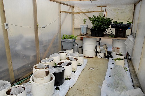 Warm side of the greenhouse is starting to fill up... still some space left.. + the 35 square meters at the cold side. The weather has been great. I have a full summer here in the greenhouse!