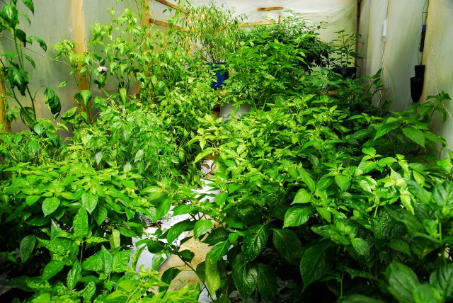 Warm side of the greenhouse. Plants enjoying the warmth of the floor caused by the hot circulating water coming from the solar cells.