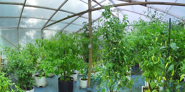 Cold side of the greenhouse. "Baccatum -forest". This is what you can get with a small handful of chile seeds.