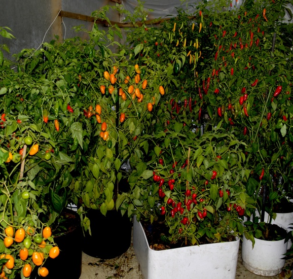 Pods still maturing at the warm side of the greenhouse.