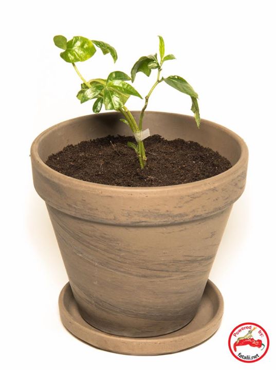 A rooted cuttings joined together with a piece of tape and potted into a small pot. The tape will hold them together just for a week or two so that they will roughly hold their position. My goal is to turn this one into a bonchi later. :) More photos to come as the growth progresses. To learn more about bonchis (bonsai chile peppers), check out: http://fatalii.net/bonchi or if you are finnish, you can order CHILIKIRJA for detailed information: http://fataliiseeds.net/search?query=chilikirja