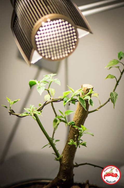 Bonchi (Bonsai chile pepper) After it has been cut downIt's now forming some new foliage under a standard fluorescent bulb. Bonchis are great as you can grow them any time of the year! Seeds for ideal bonchi varieties here: http://fataliiseeds.net/search?query=bonsai